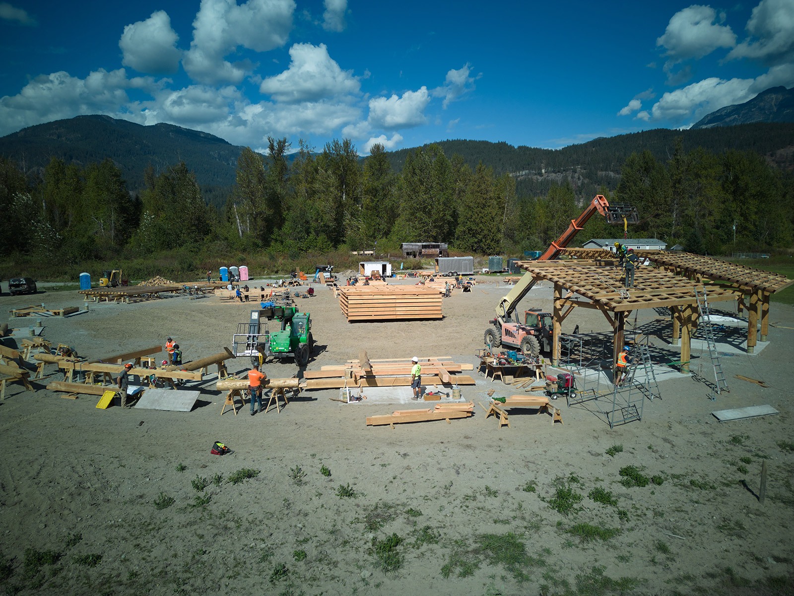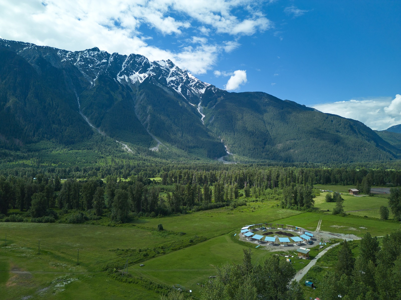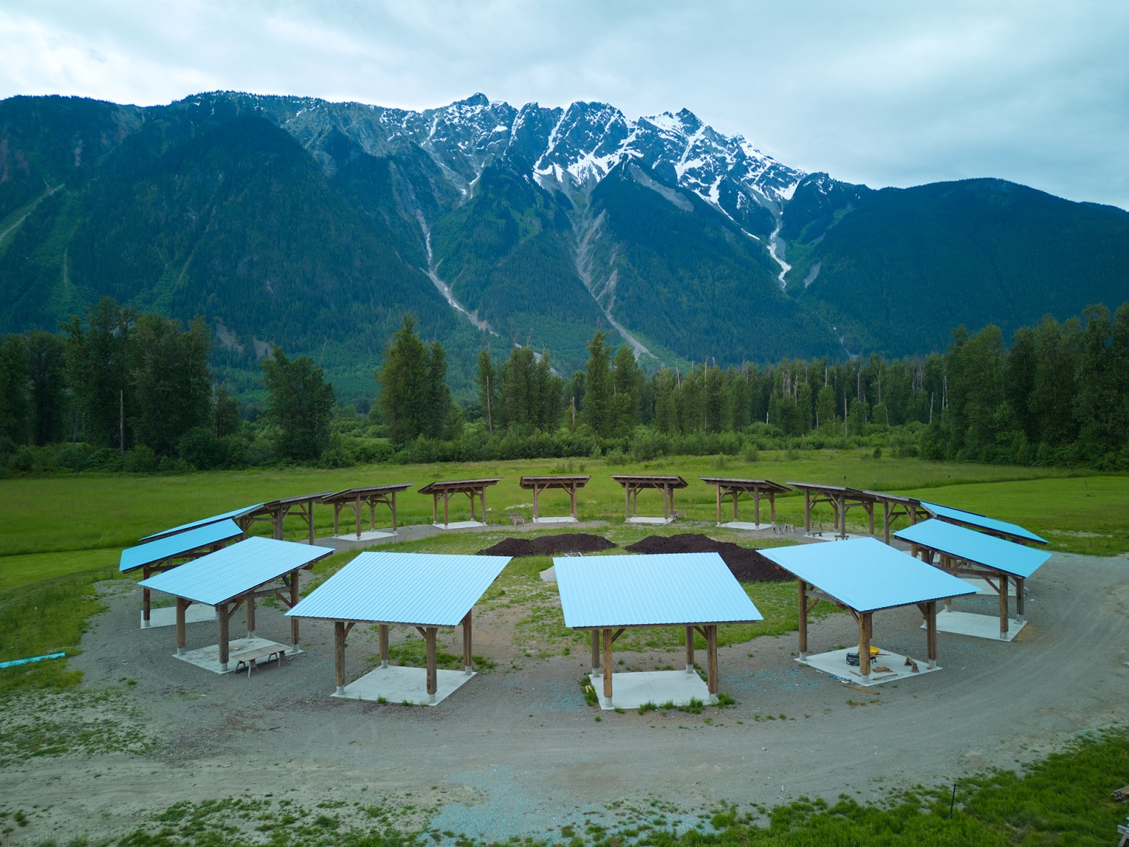On February 27, 2023, The Lil’wat Nation Chiefs and Council unanimously supported the initiative of developing the Powwow Arbor. The Location of the Powwow Arbor is located on land legally leased to the Society by Brian Lester. It is located at 347 Kwetsa7(IR2) between Mt Currie and Pemberton BC. We are proud of our accomplishments to date. With generous support from donors including funds and many volunteers from around the world. Construction of the arbour began in the spring of 2023.